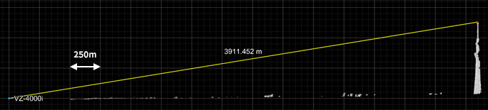 VZ-4000i-25のような超ロングレンジスキャナーは一般的なTLSによる3次元測量では使用されません。 1km以上離れた対象物のモニタリング(防災/減災のための地形計測、大規模鉱山での現場管理等)に使用されることが多いスキャナーです。