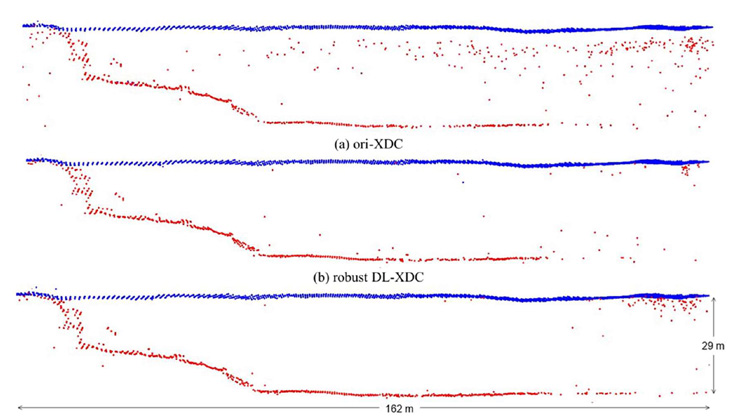 受光感度を高くしているため近赤外レーザーよりも空中・水中にノイズデータが多く発生します。RIEGLソフトウェア「RiPROCESS」にて効率良くノイズ除去が可能です。
